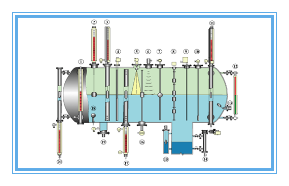 變送器選項:可選干簧管液位變送器、可選磁致伸縮液位變送器、可選全智能帶表顯示液位變送器