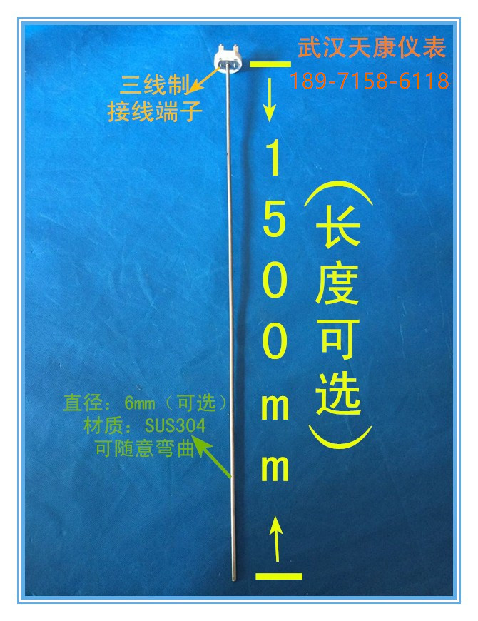 產(chǎn)品名稱:鎧裝熱電阻內(nèi)芯 產(chǎn)品型號:WZPK-106 廠家:武漢天康儀表有限公司 規(guī)格:L=1500mm 保護(hù)管直徑:6MM 保護(hù)管材質(zhì):304不銹鋼 連接螺紋:* 分度號:Pt100 (可以根據(jù)實際需要定做)